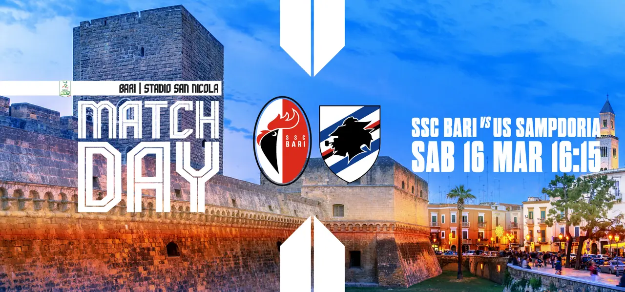 Il Bari di mister Iachini ospita questo pomeriggio sul terreno del San Nicola la Sampdoria guidata da mister Pirlo; la sfida è valida per la 30a giornata di Serie BKT '23-'24, fischio d'inizio fissato per le 16:15.