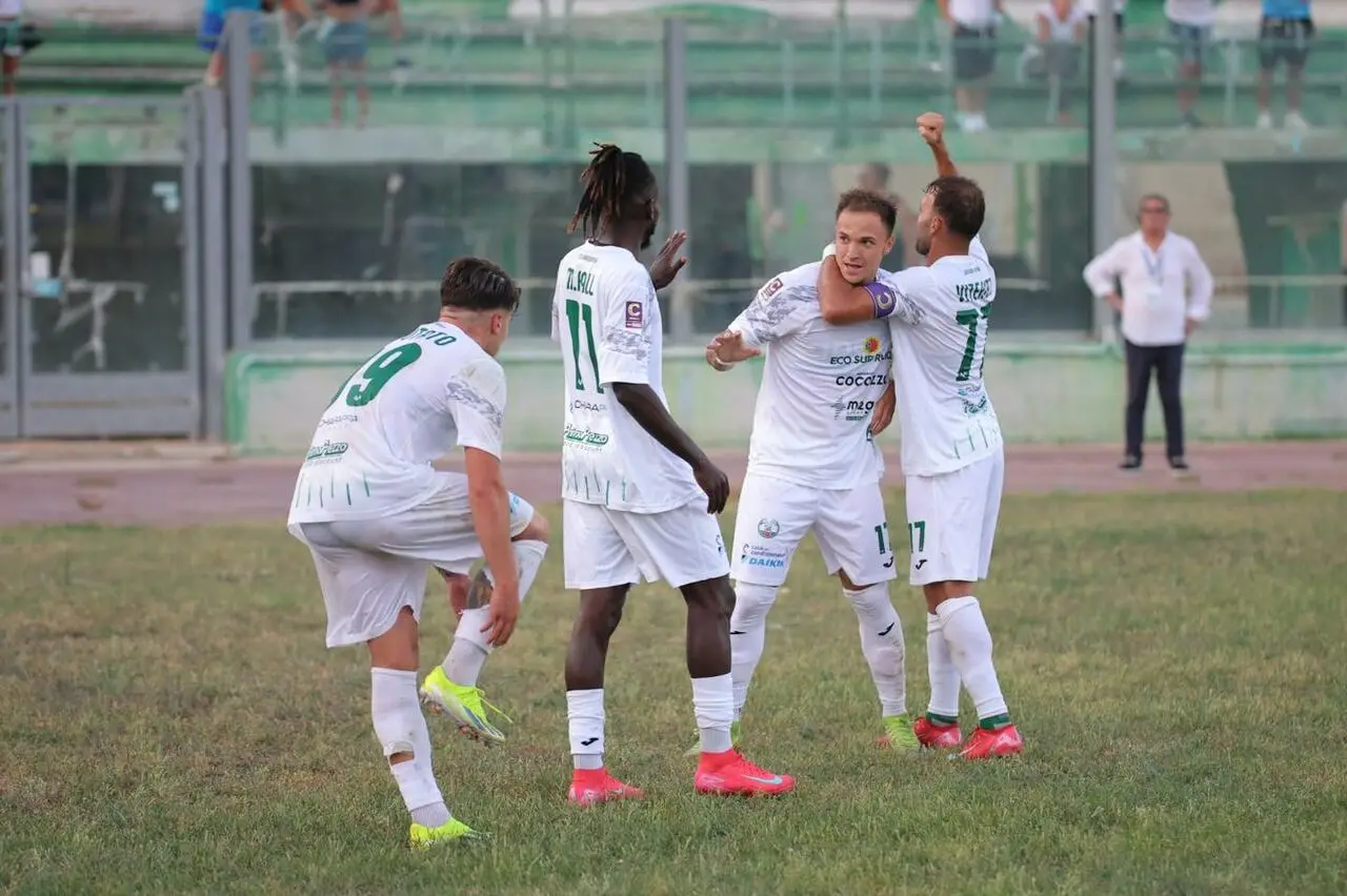 Monopoli (3-5-2): Piana; Viteritti, Bizzotto, Piccinini; Valenti, Falzerano (46’ st Scipioni), Battocchio (29’ st Bordo), Calvano (10’ st Greco), Imputato; Longo (10’ st Fall), Bruschi (10’ st Tirelli). All.: Colombo