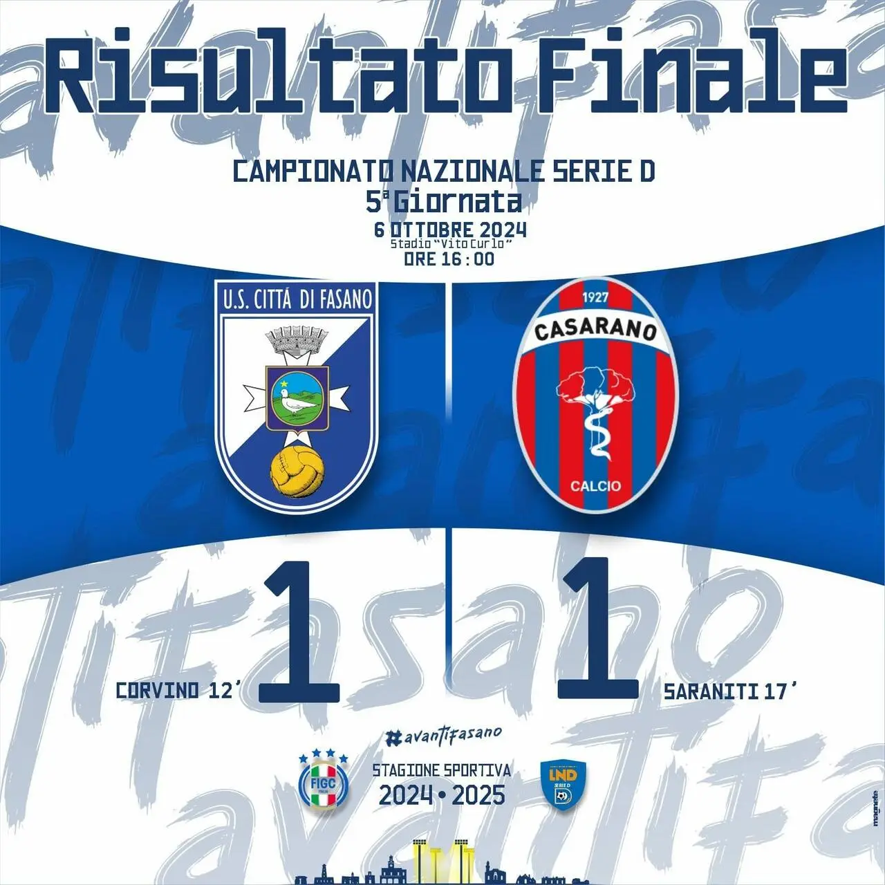 VIDEO Fasano-Casarano 1-1. La sintesi di Antenna Sud