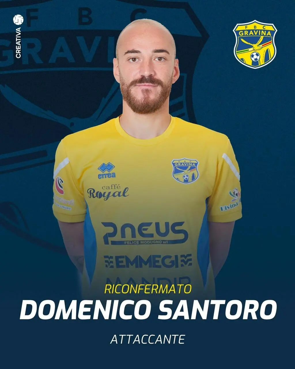 La FBC Gravina comunica la riconferma dell’attaccante Domenico Santoro. Nato a San Giovanni Rotondo nel 1995, il legame fra l’attaccante foggiano e il Gravina è diventato indissolubile grazie alle straordinarie performance realizzate nelle 4 stagioni in maglia gialloblù. Con oltre 50 reti, oltre 100 in carriera, Santoro è il miglior marcatore in serie D della storia del Gravina Calcio. Nella scorsa stagione è andato in rete ben 14 volte, confermandosi bomber di razza.