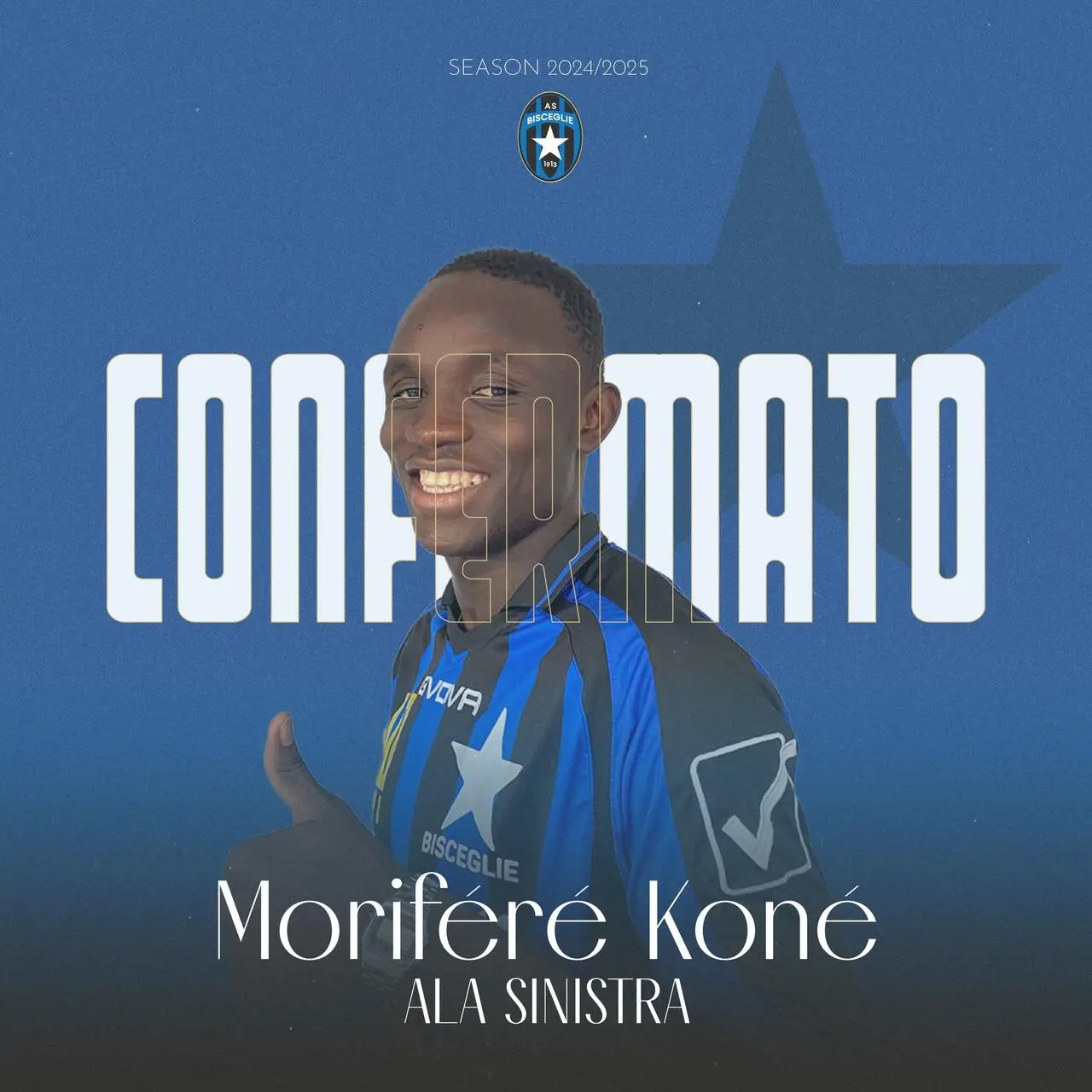 Bisceglie, 19 agosto 2024 – Non ci sono solo volti nuovi nella rosa che il Bisceglie Calcio sta allestendo in vista della stagione che sta per iniziare: la società è infatti felice di annunciare una riconferma rispetto all’annata scorsa, quella di Moriféré Koné.