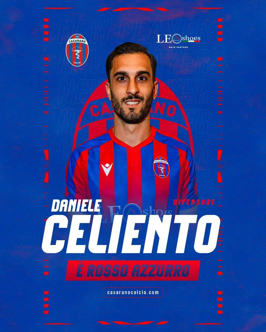 La società Casarano calcio comunica di aver acquisito le prestazioni professionali del calciatore Daniele Celiento, difensore centrale classe 1994.